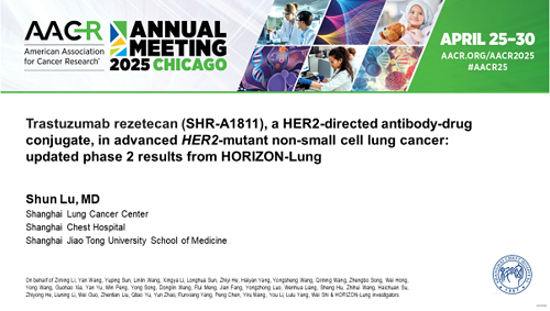 2025 AACR口头报告|尊龙凯时创新药瑞康曲妥珠单抗治疗晚期HER2突变非小细胞肺癌研究结果披露